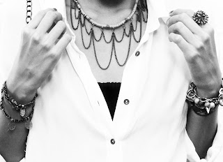 ahora estamos viendo últimamente los maxi collares o collares XL, que con collares espectaculares con pedrería en diversos colores, así como los collares de picos, de cadenas anchas, o muchas cadenas pequeñas, en fin como dije antes espectaculares, y ahora estos son los responsables de terminar un outfit y ahora el éxito de este lo determinan los accesorios.